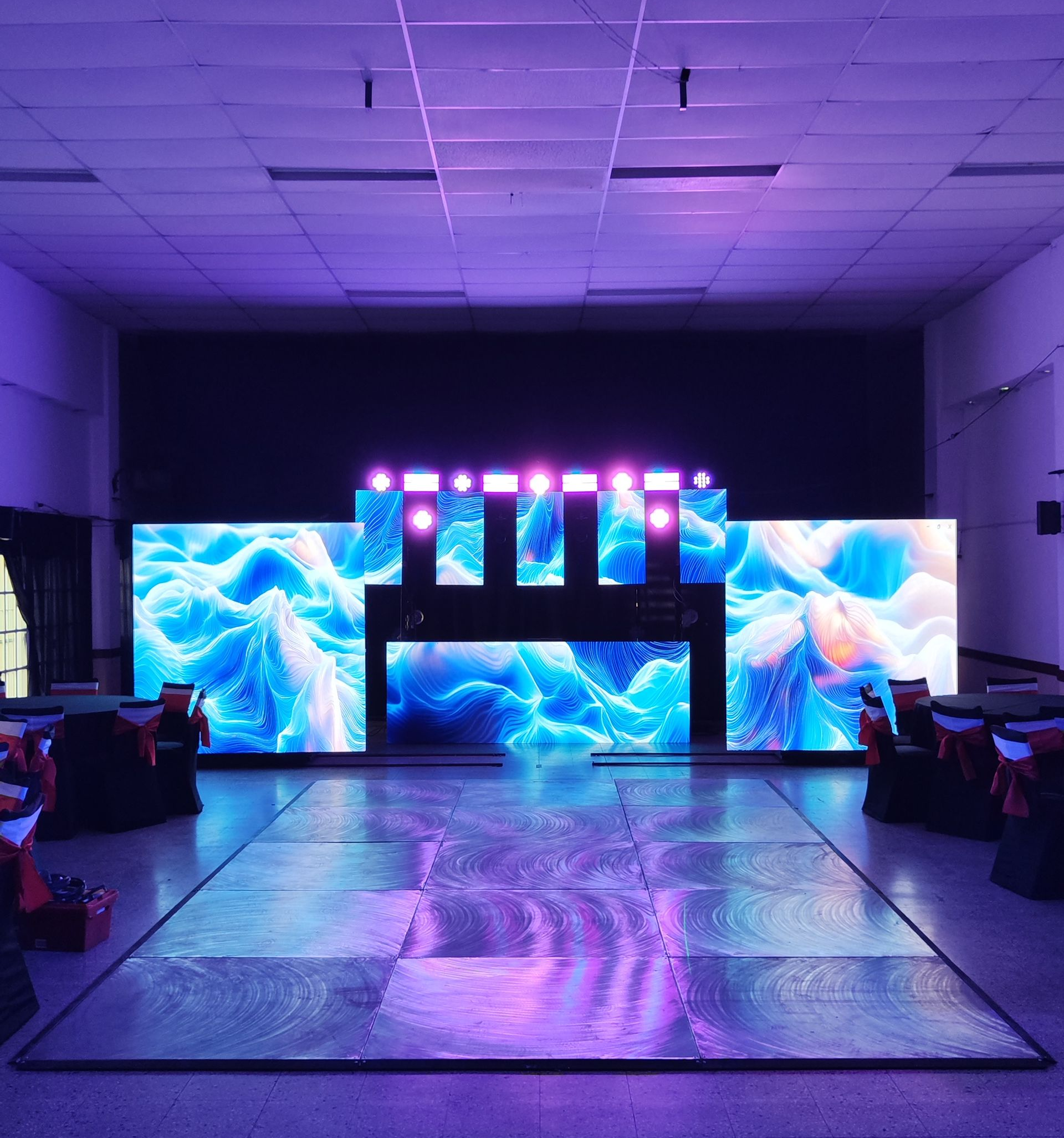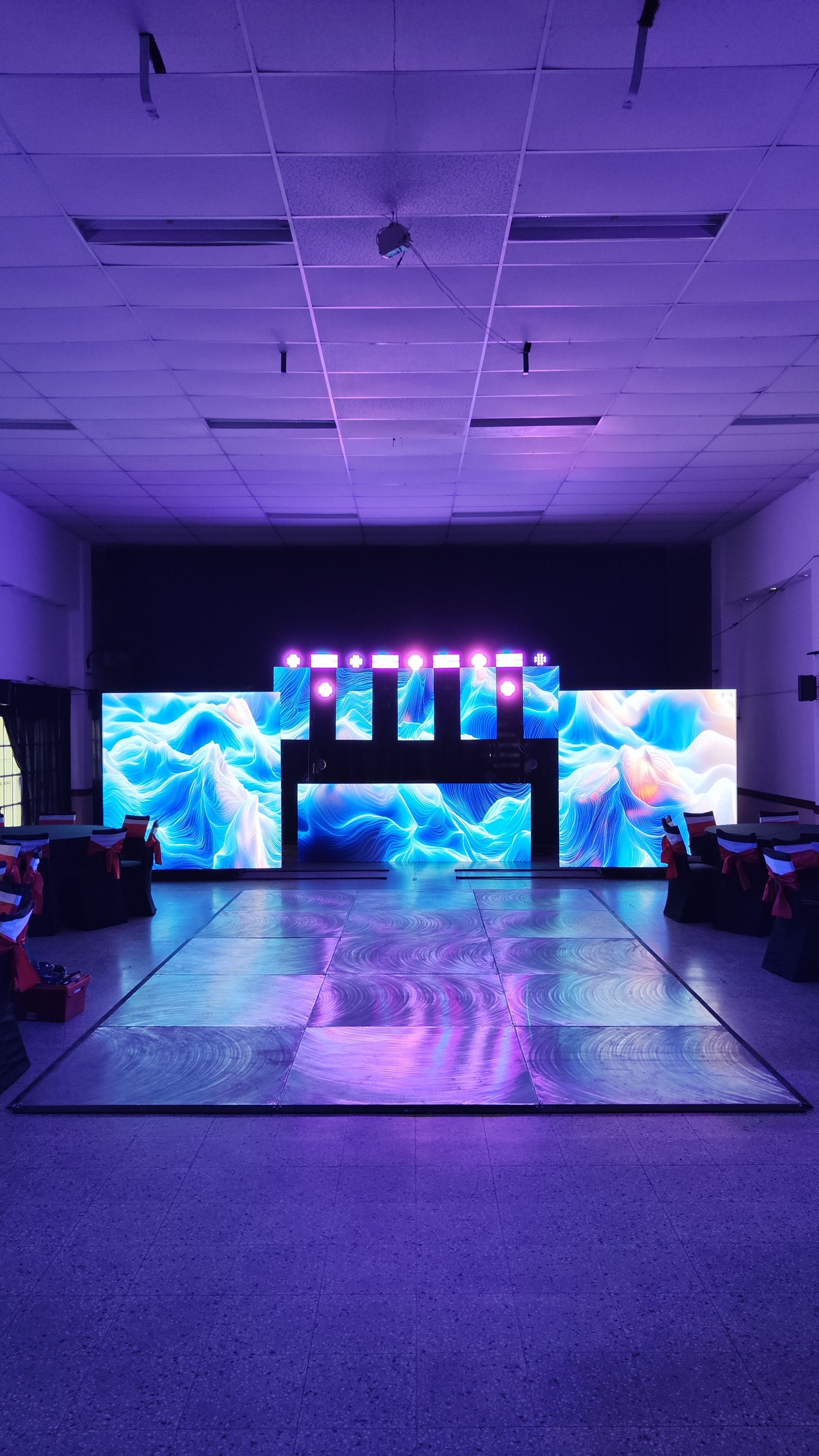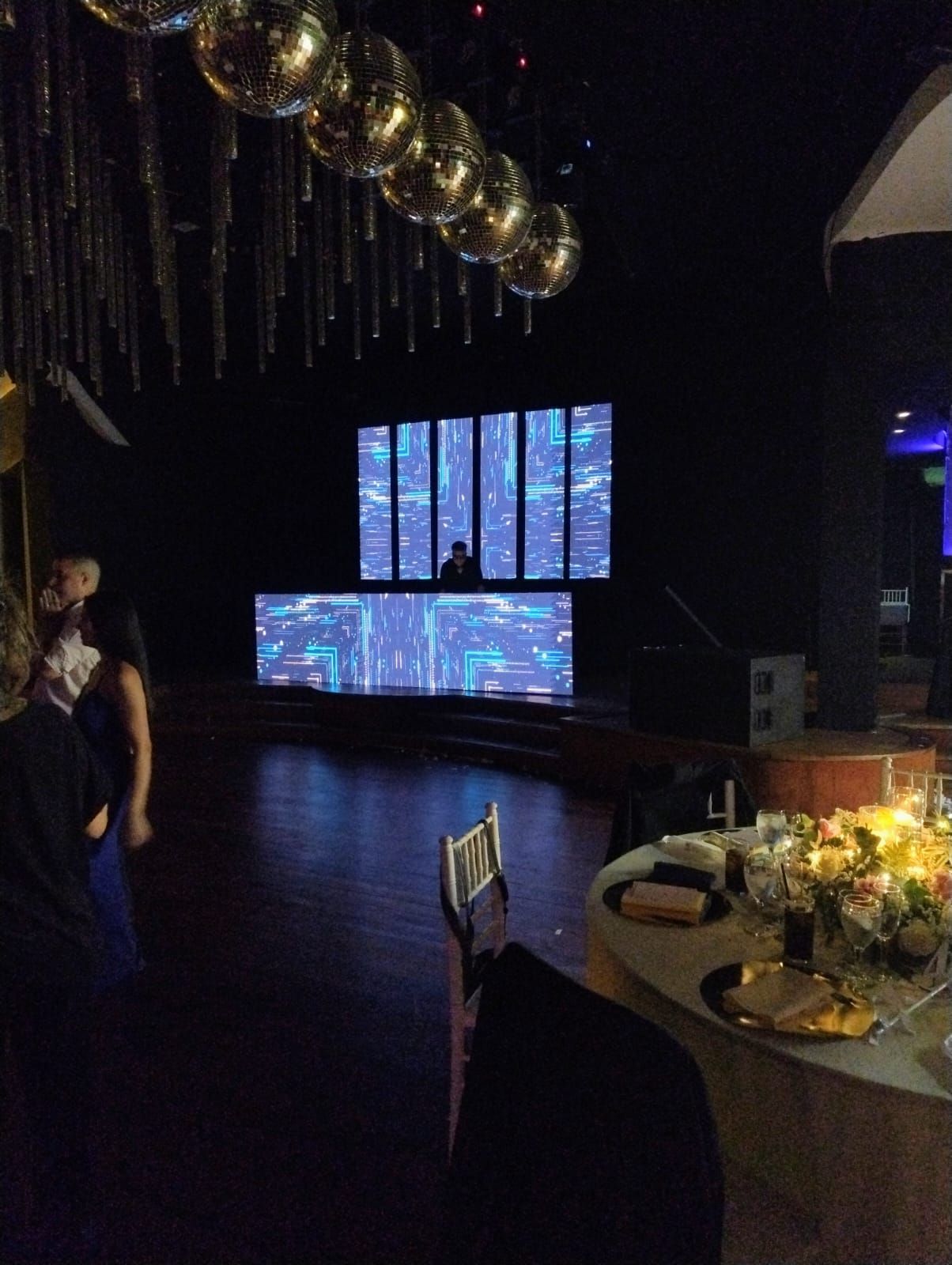 Pantallas LED con apertura, cabinas para DJ, totems y efectos visuales que transforman cualquier salón.